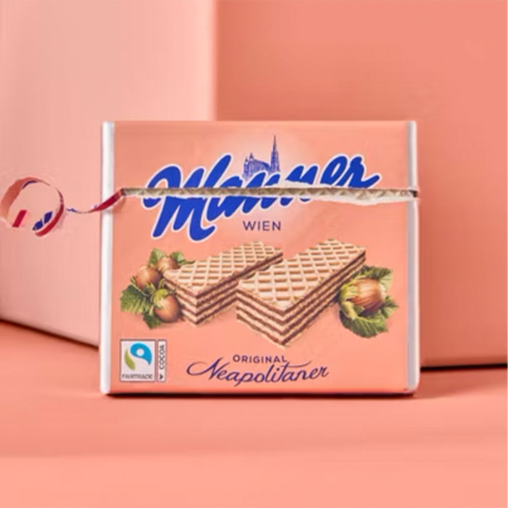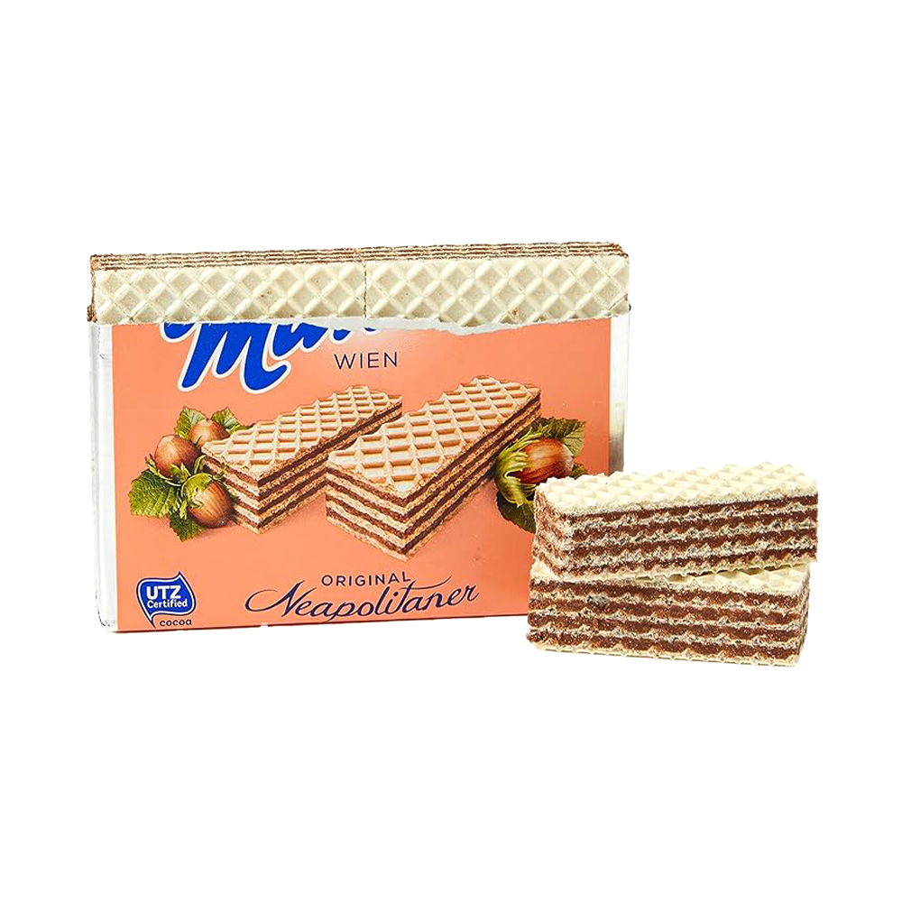 استمتع بالطعم النمساوي الكلاسيكي الذي لا ينسى مع ويفر Manner الأصلي! هذا الويفر الهش والخفيف يجمع بين طبقات من البسكويت المقرمش وكريمة البندق الغنية، ليمنحك تجربة مذاق فريدة ومثالية لأي وقت.